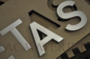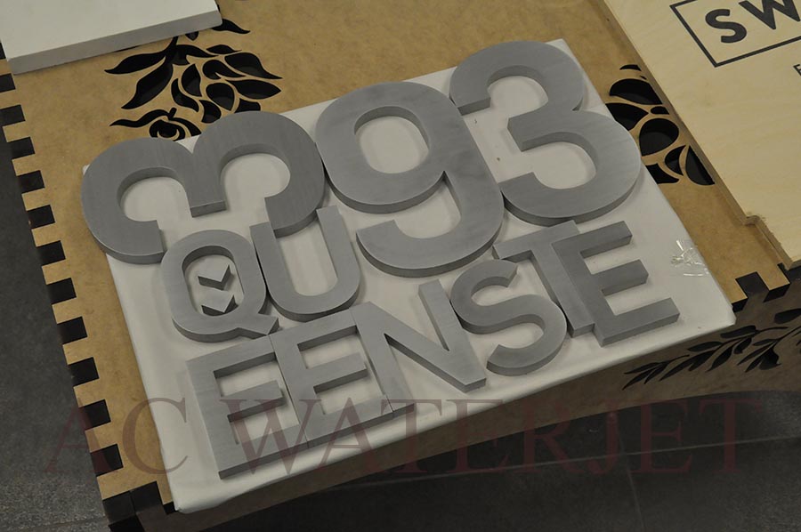 on Waterjet Cutting Material: 1/2” thk Aluminum Finish: Brushed #4 math finish